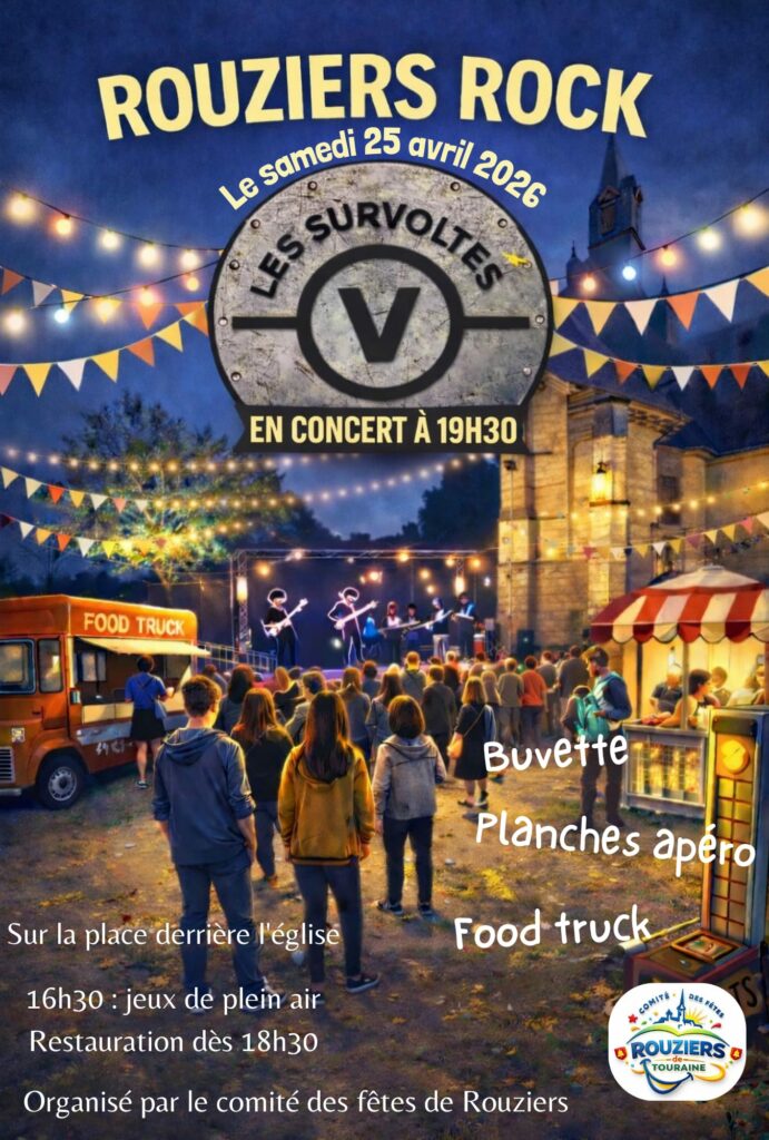 Le samedi 25 avril 2026, le comité des Fêtes de Rouziers-de-Touraine vous donne rendez-vous pour la première édition de Rouziers Rock, un événement convivial et festif, ouvert à tous.